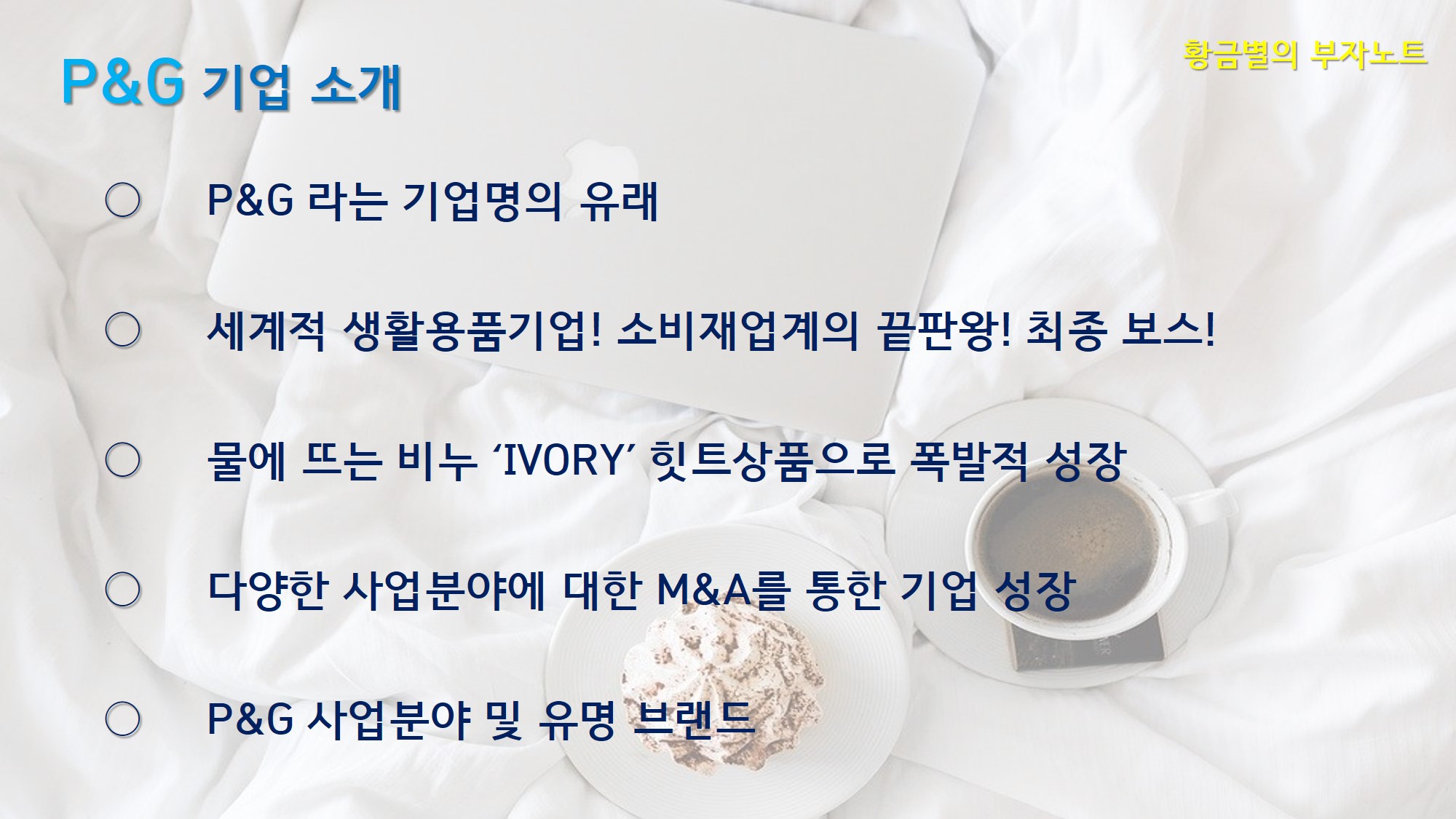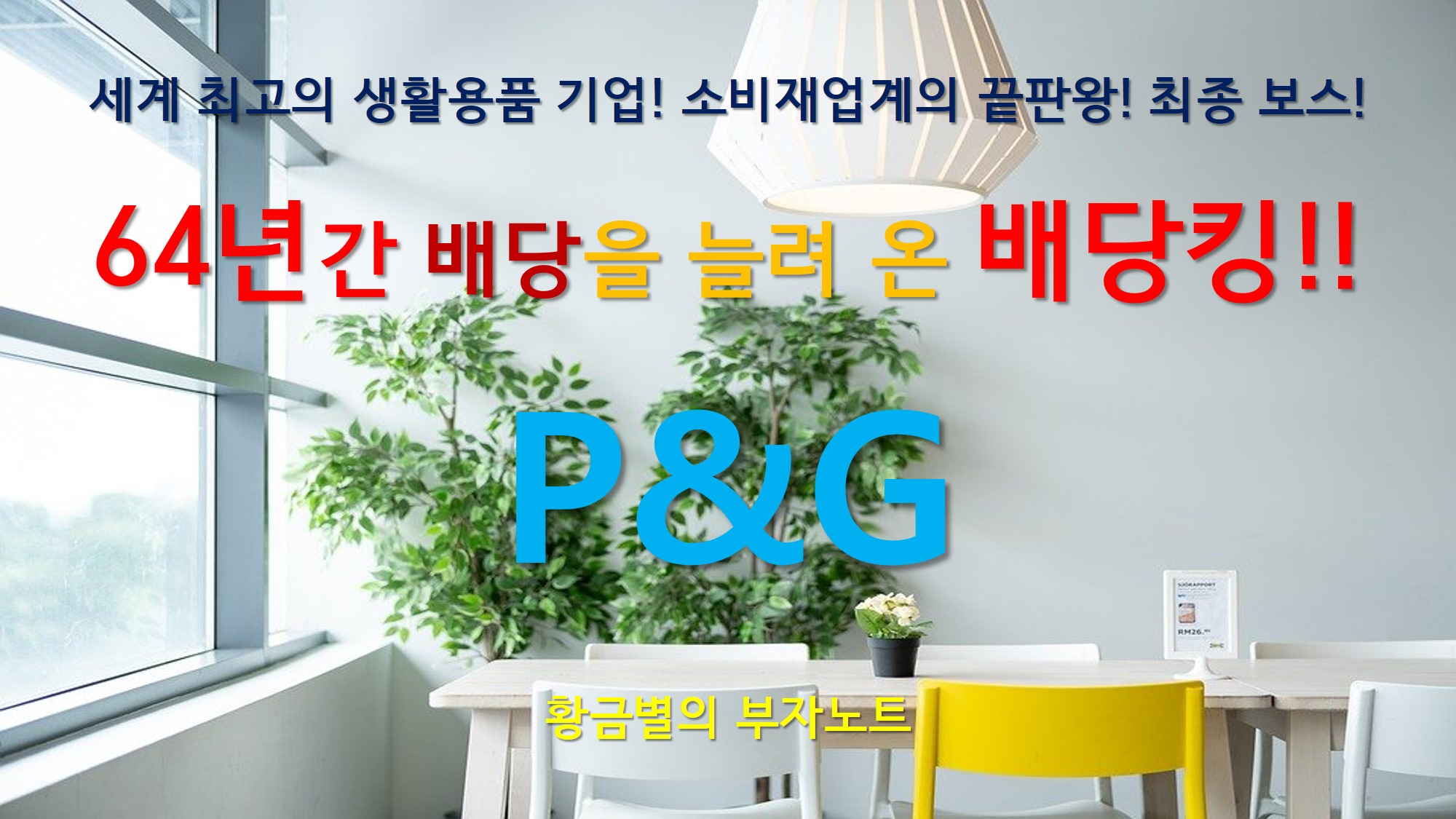 최근에 계속 ETF 분석 영상만 올렸었는데, 이번 영상에서는 오랜만에 개별종목을 소개해드리려고 합니다. 오늘 소개해드릴 종목은 세계 최고의 생활용품 기업이자, 소비재업계의 끝판왕 최종보스이자, 무려 64년간 배당을 늘려온 배당킹 피앤지입니다.