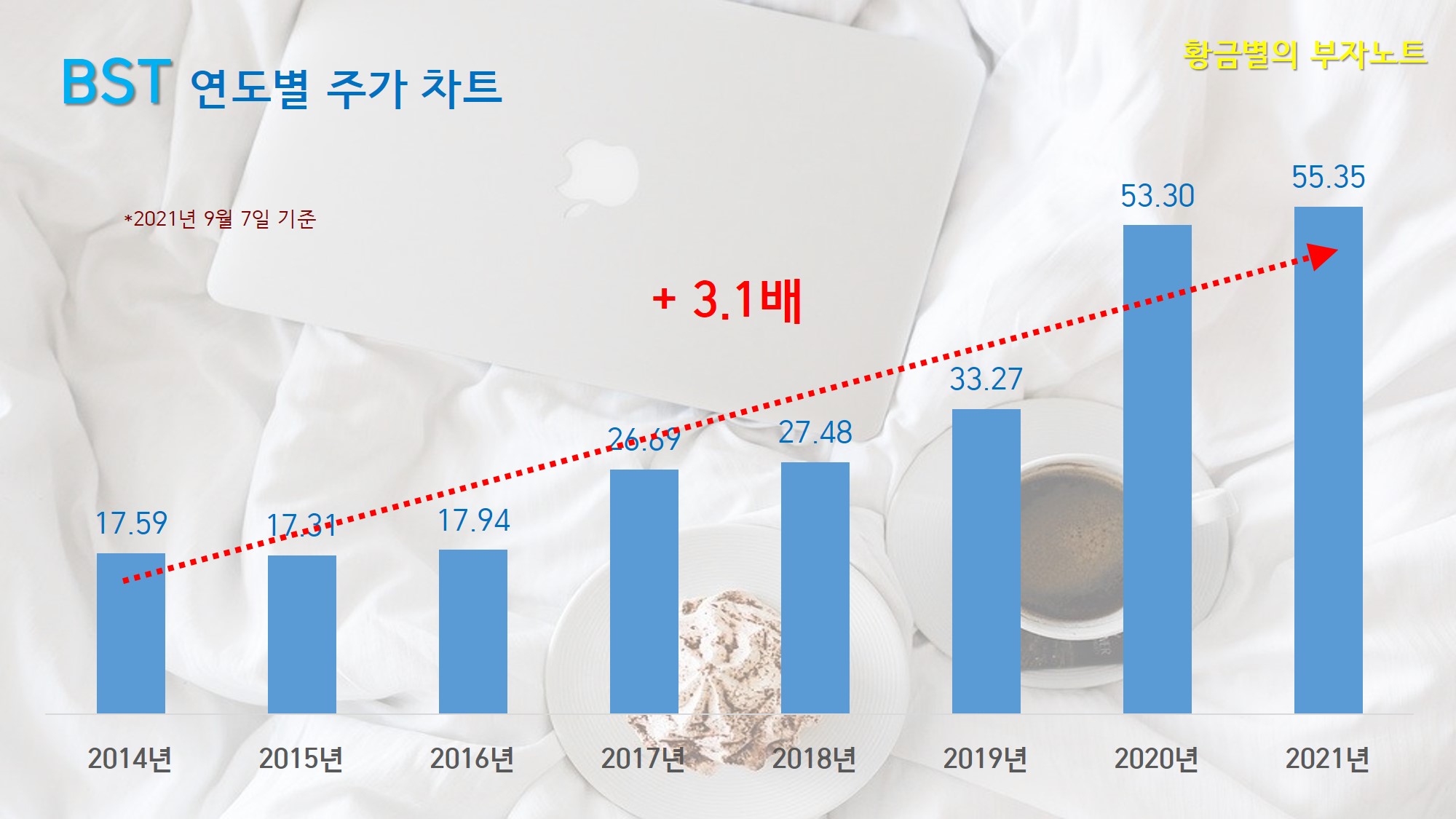 만 7년동안 주가는 약 3.1배 정도 상승했습니다.